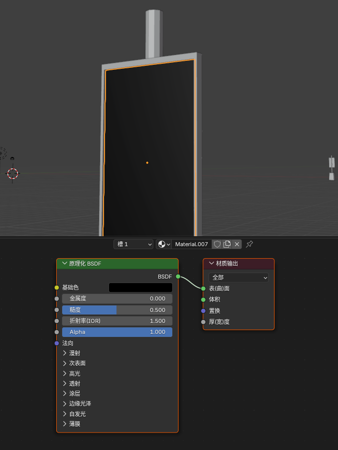 然后分离中间屏幕的平面,给它一个基础的黑色材质, 然后注意要将这个屏幕的模型命名为"info",后面写代码要用上的
