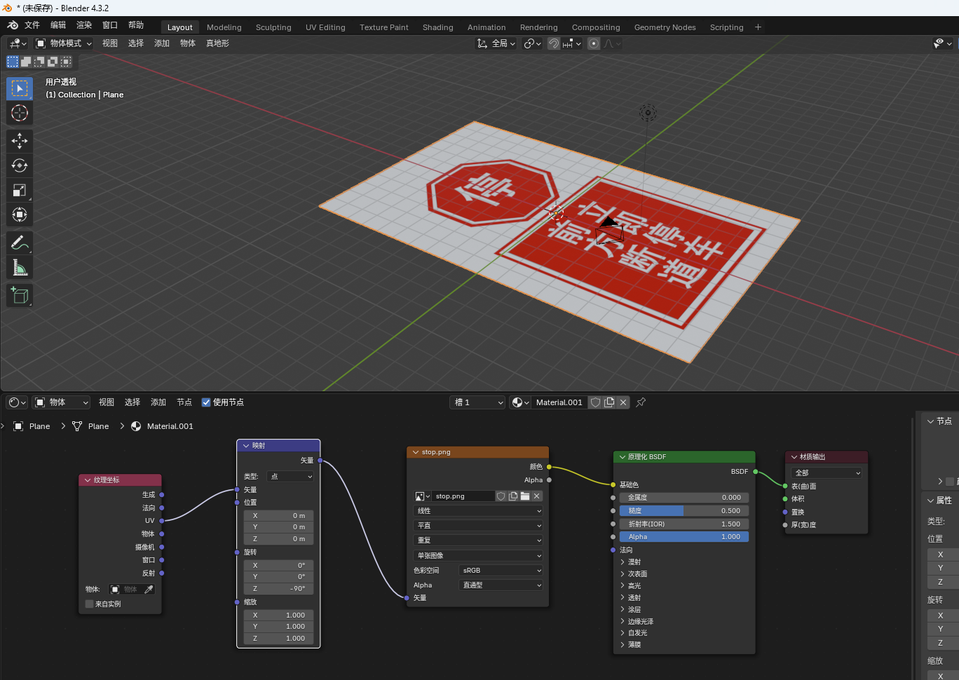 打开着色器编辑器,新建一个材质,在空白处右键,添加》纹理》图像纹理,然后把图片贴上去,加上纹理坐标和映射,给纹理旋转到正确角度