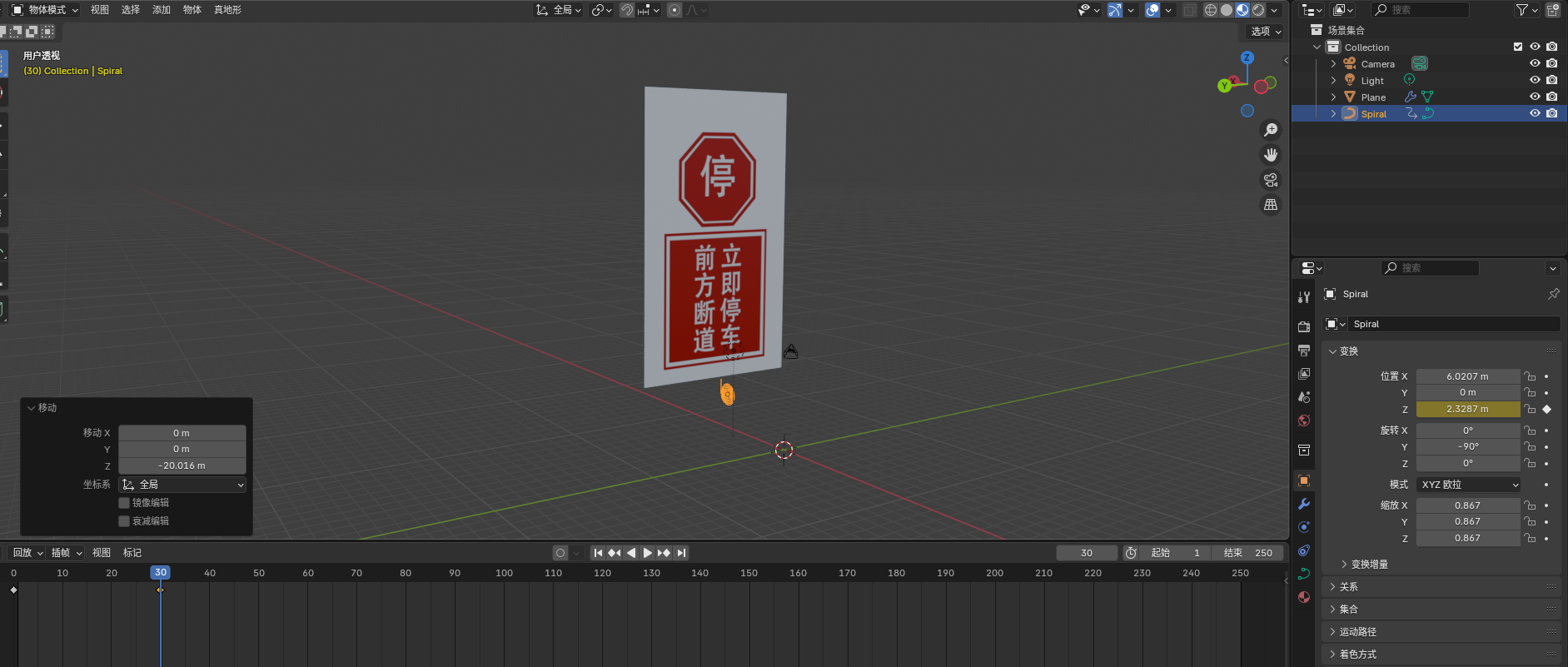 大概到30帧的时候,把螺旋移动到将幕布完全展开,再次打上关键帧