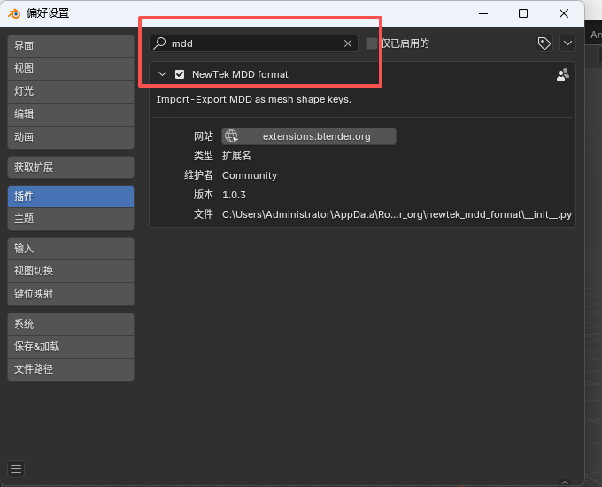 选中物体,然后导入刚才的mdd文件,动画就以形态键的模式添加进来了
