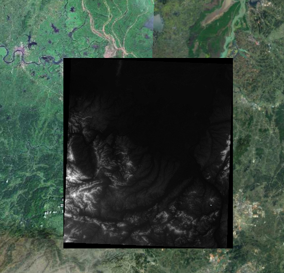 卫星影像和DEM数据的尺寸要保证统一,我们把DEM的尺寸裁成卫星影像的大小