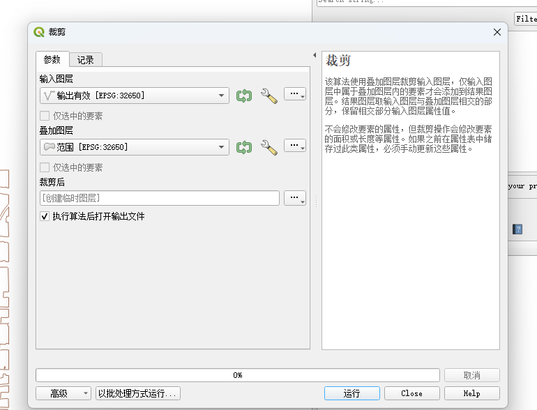 新建一个多边形临时图层,选矢量》地理处理工具》裁剪
