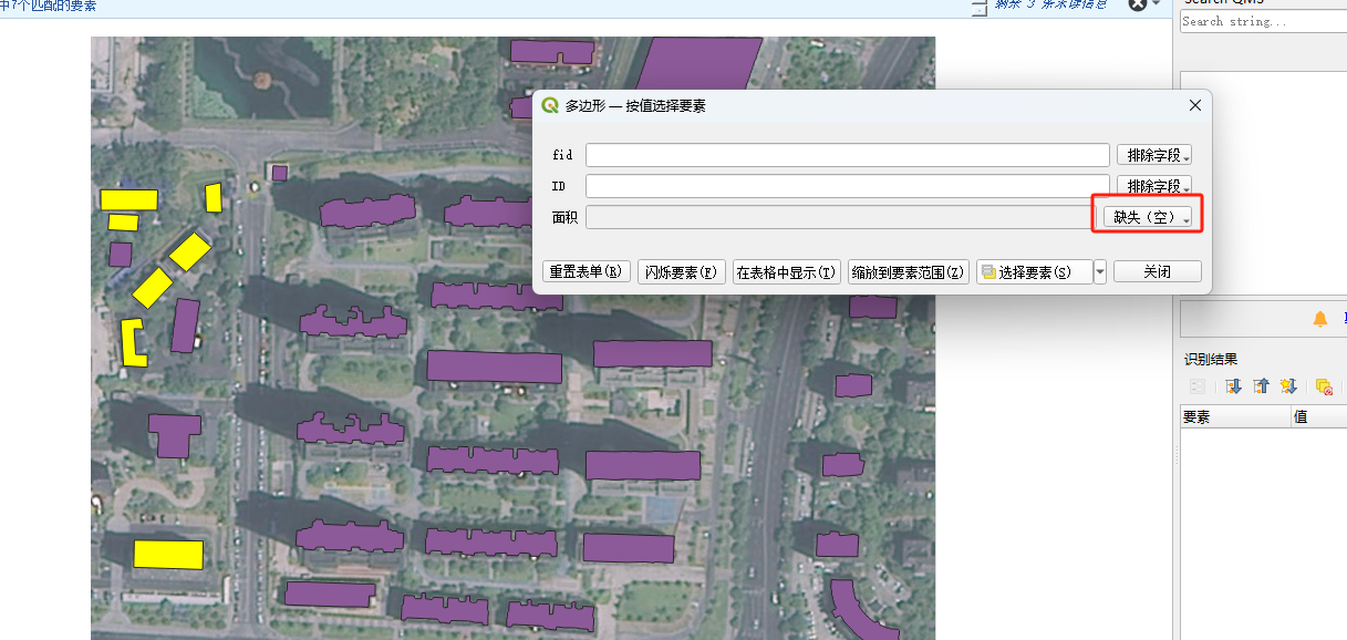 然后使用各种筛选条件去做筛选并删除给缺失面积的图层赋予面积